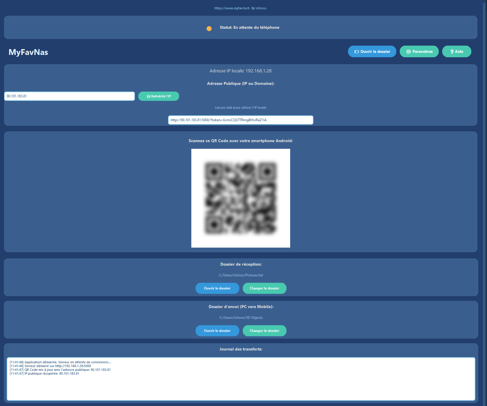 Oubliez les abonnements Cloud coûteux et les serveurs tiers qui stockent vos données privées. MyFavNAS est une solution de transfert direct et privé entre votre smartphone et votre PC.